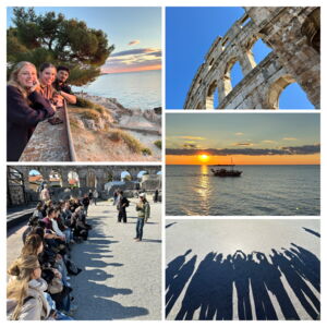 Zum Abschluss der Reise ging es nach Pula, in die größte Stadt Istriens. Hier erwartete die Gruppe eines der am besten erhaltenen römischen Amphitheater der Welt – einst Schauplatz spannender Gladiatorenkämpfe. Bei einem Spaziergang durch die Altstadt entdeckten die Schülerinnen und Schüler den Triumphbogen der Sergier, das Forum und den Augustus-Tempel und bekamen dabei ein lebendiges Bild vom Leben in der Antike.